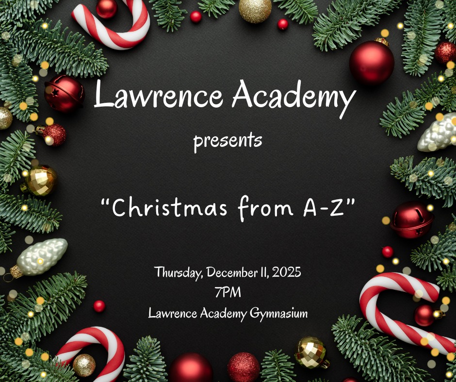 Our Annual Christmas Concert will be held on Thursday, December 11th at 7:00pm in the gym. This year's theme is “Christmas from A-Z”. We hope to see you there!
